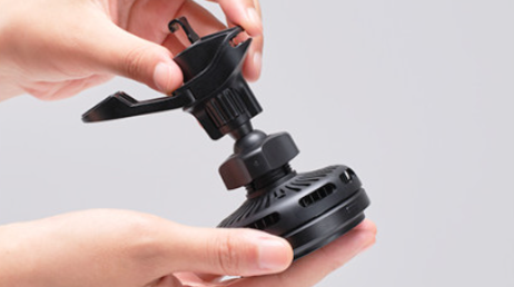 마운트 조절 다이얼을 좌우로 돌려 후크 길이를 차량 송풍구 날개에 맞게 조절합니다.