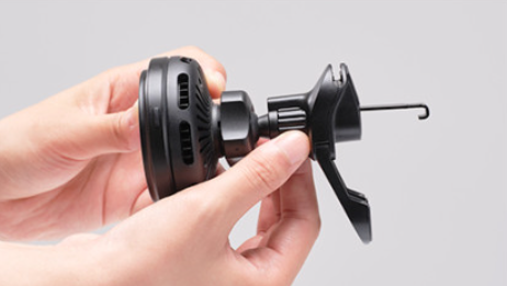 차량 송풍구에 후크를 걸고 안정적으로 장착합니다.