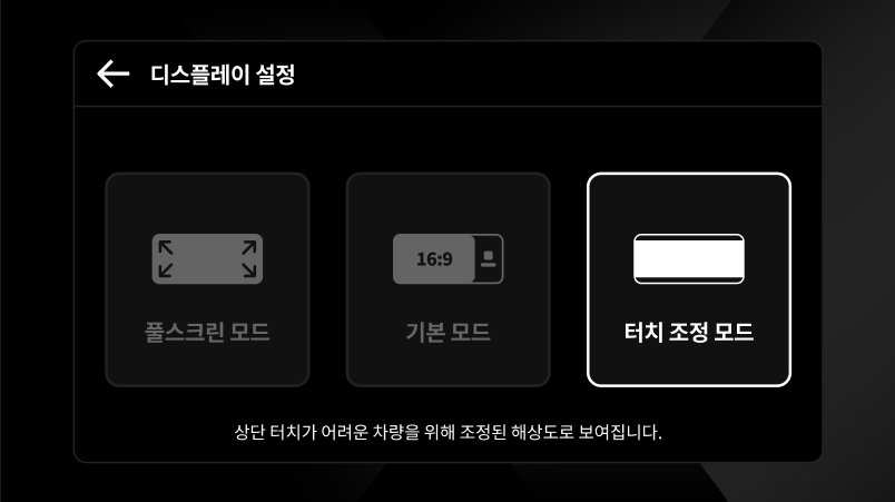 터치 조정 모드는 상단/하단에 터치가 불가한 영역을 회피하여 화면을 표시합니다.