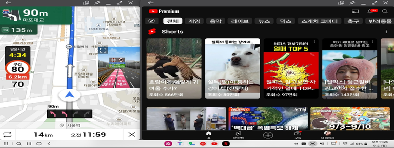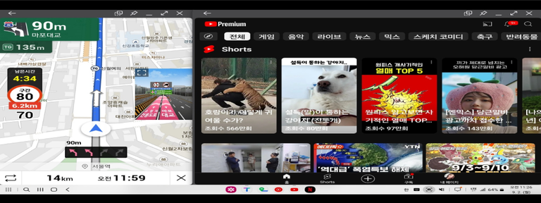 ※ 순정 내비게이션을 분할 화면으로 사용할 시 영상이 정상적으로 표시되지 않을 수 있습니다.