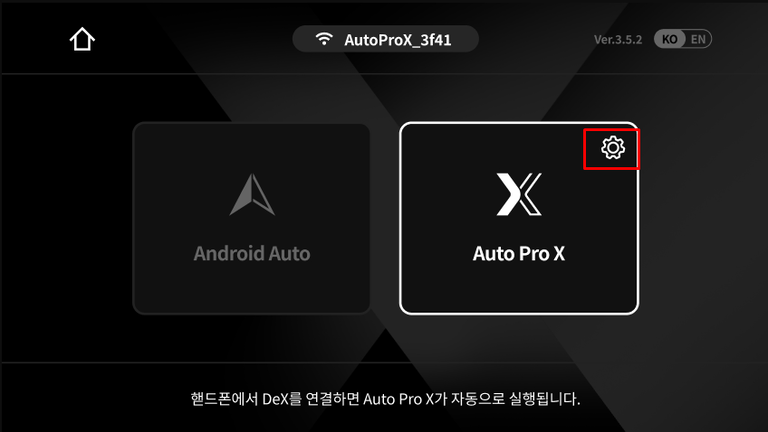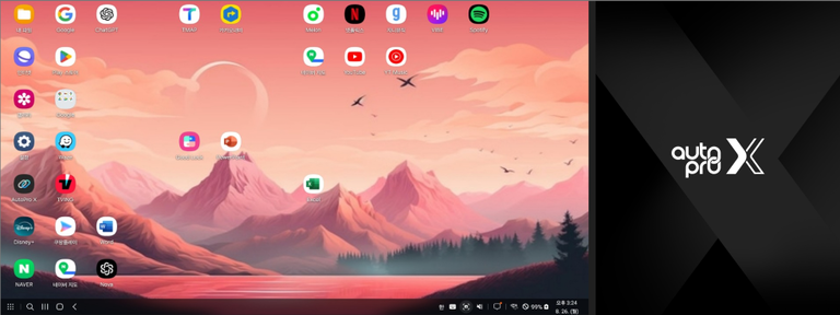 기본 화면 모드는 우측에 오토프로X 로고가 보이며 차량 내비게이션 디스플레이를 일부만 사용합니다.