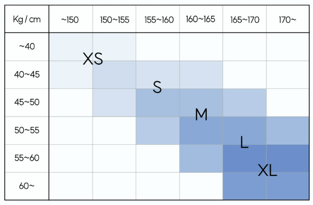 사이즈 고민이 많으실 때에는 아래 사이즈 추천 표를 참고해보세요!