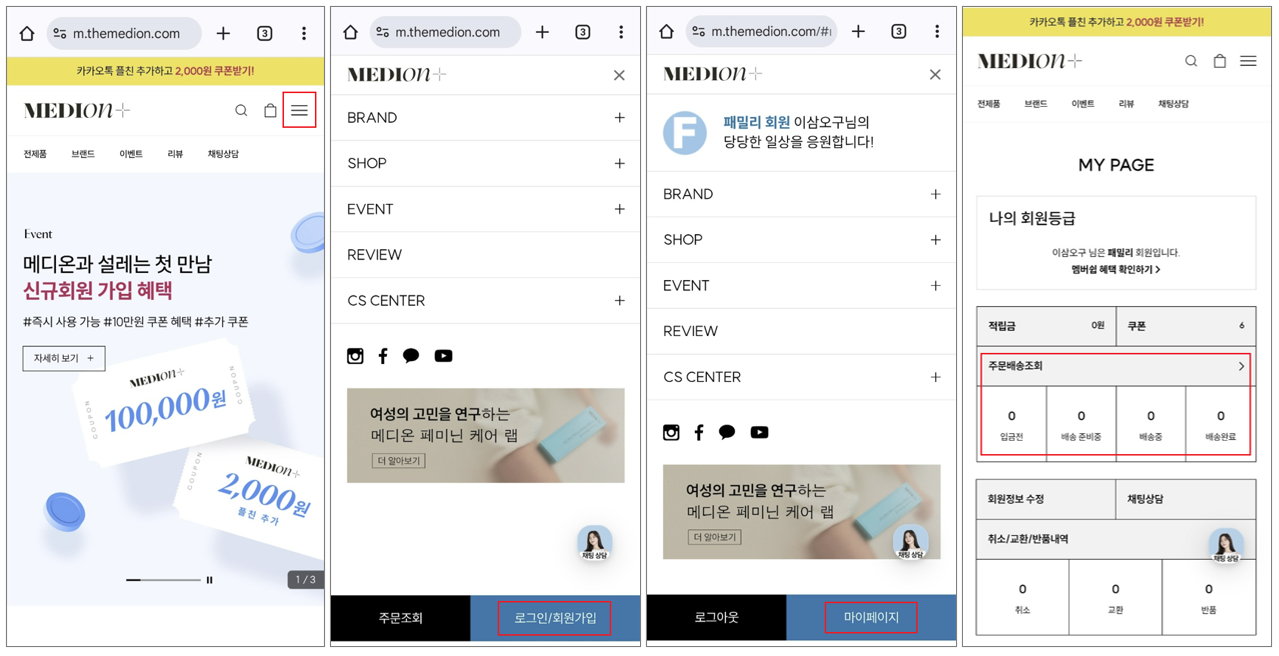 공식 홈페이지 → 로그인 → 마이페이지 → 주문배송 조회 → 교환 신청 → 택배비 선결제