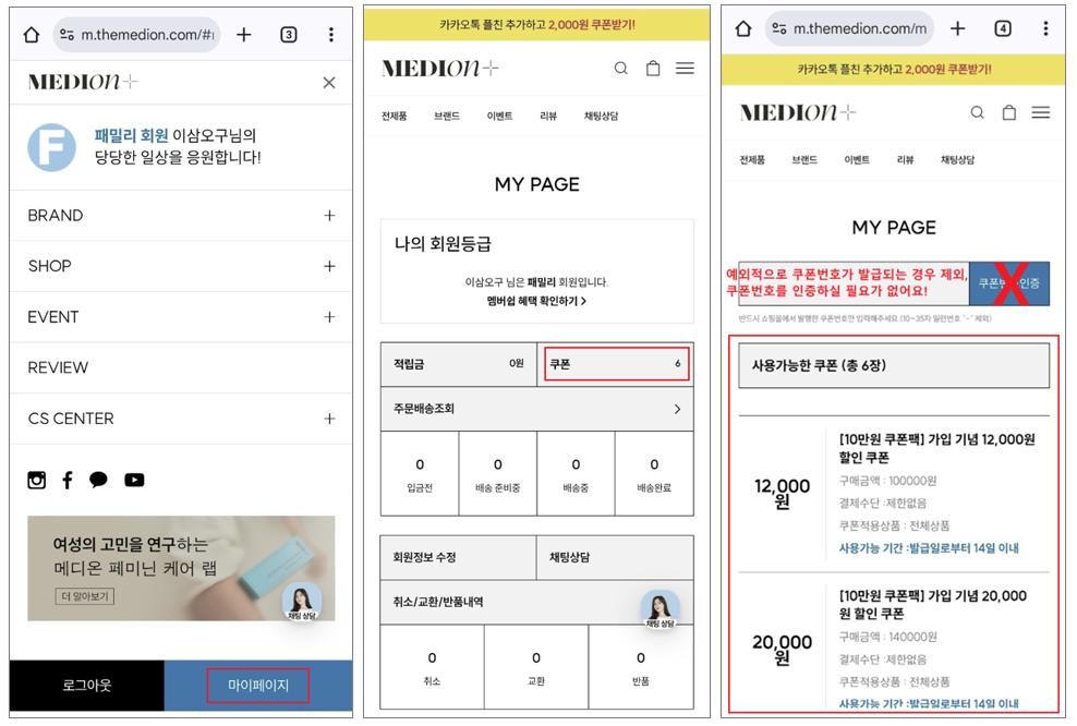 마이페이지 내 쿠폰 확인 방법