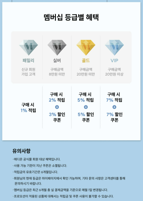 메디온 멤버십 회원 가입 혜택 상세 및 유의사항