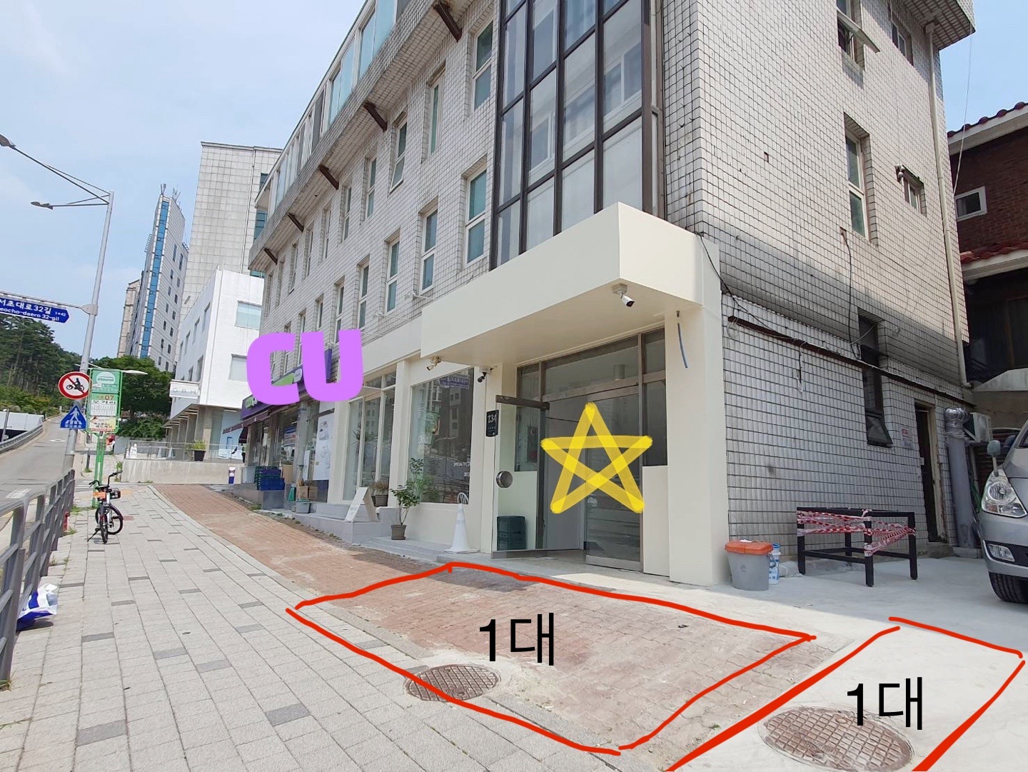 주차는 건물 앞에 일렬로 1대만 유료 주차가 가능하며 월 기준 5만원 입니다.