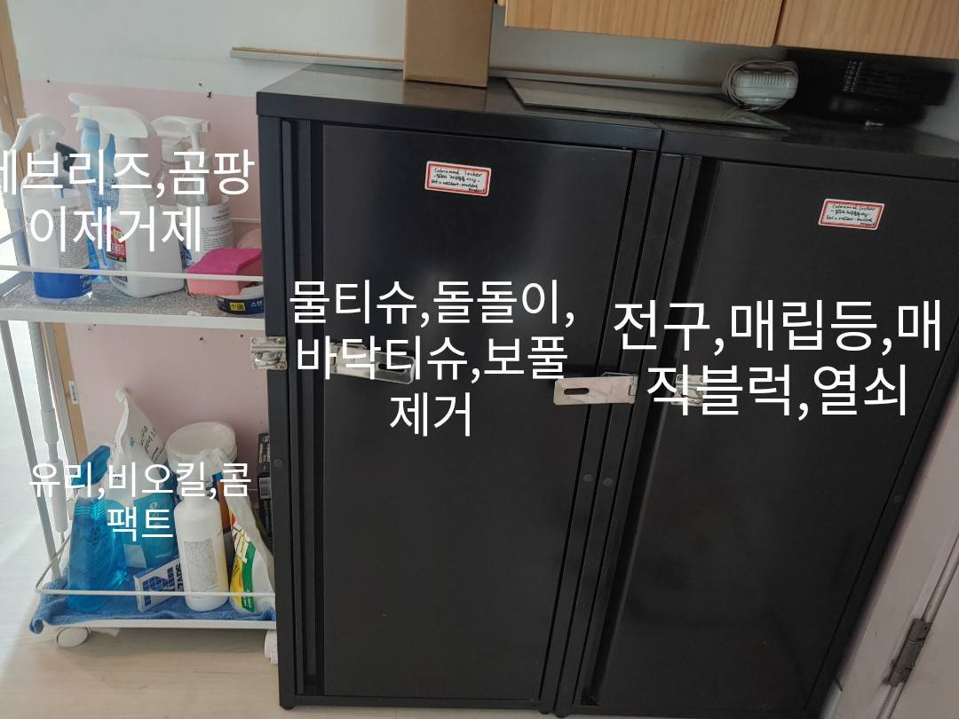 - 걸레 : 화장실앞 검정 칵비넷 안