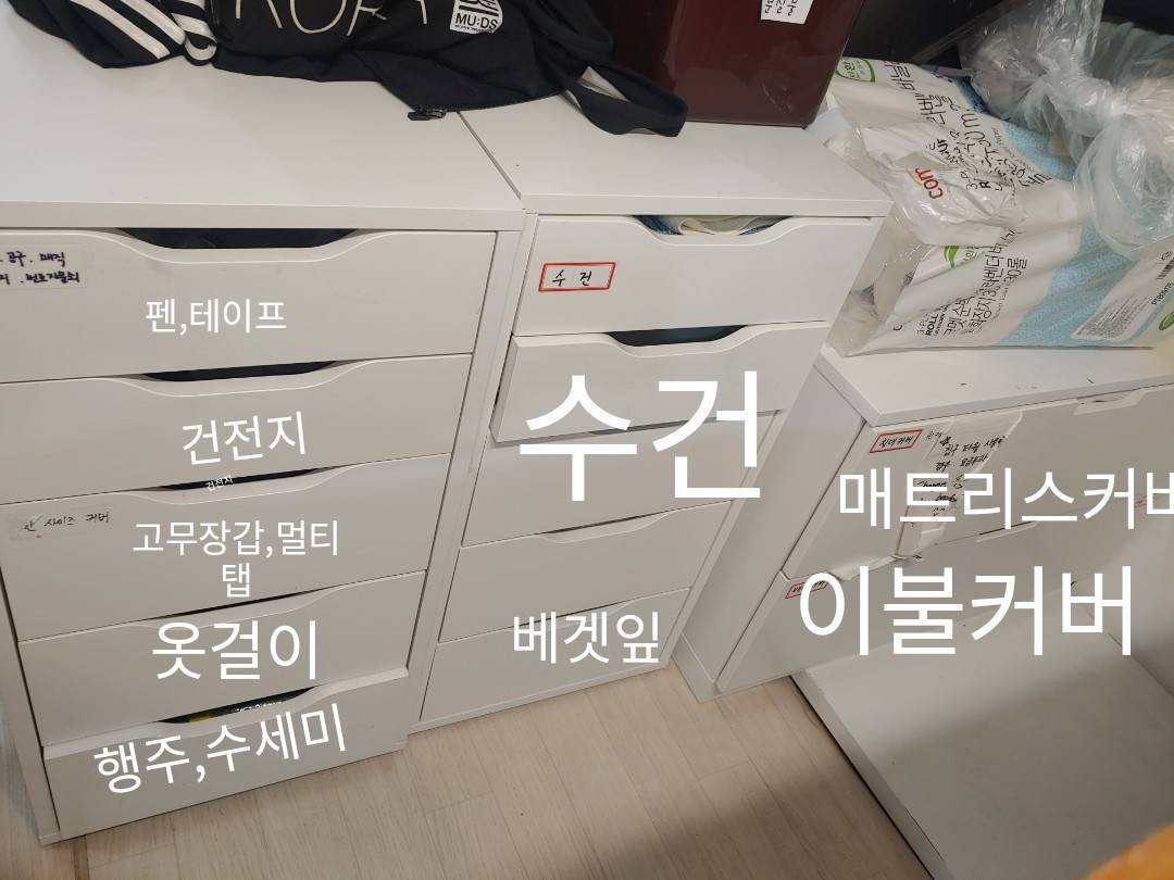- 수건 : 공용공간 바깥쪽 서랍장 위3칸
