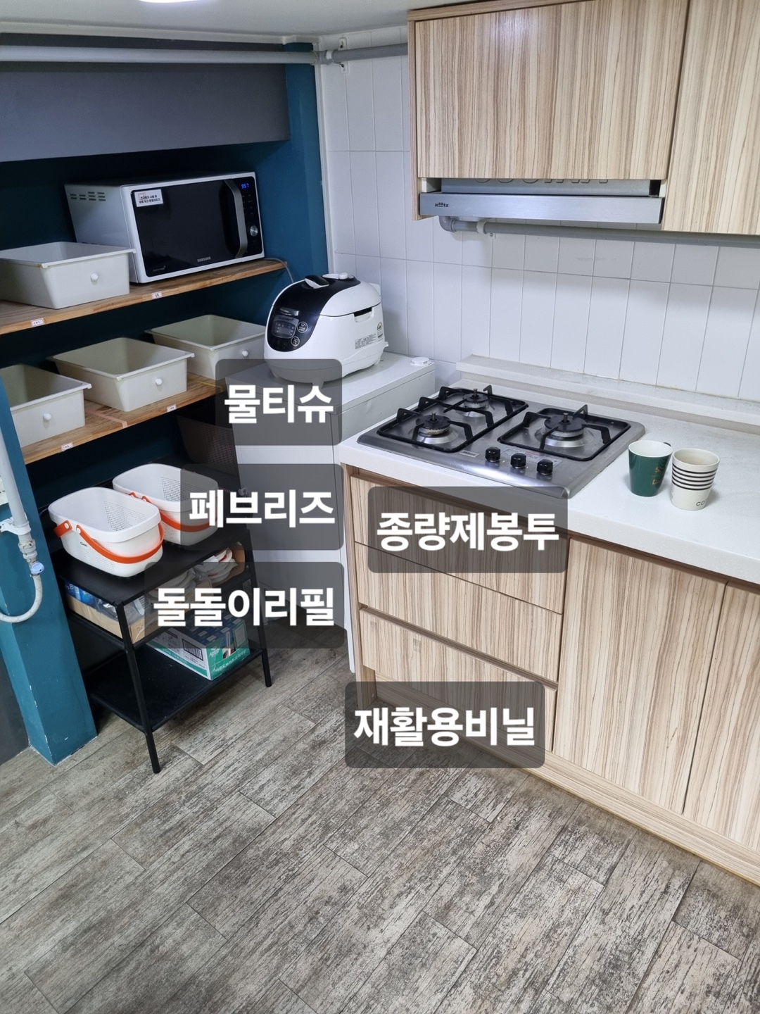 재활용 봉투 : 가스렌지 아래 3번 서랍.