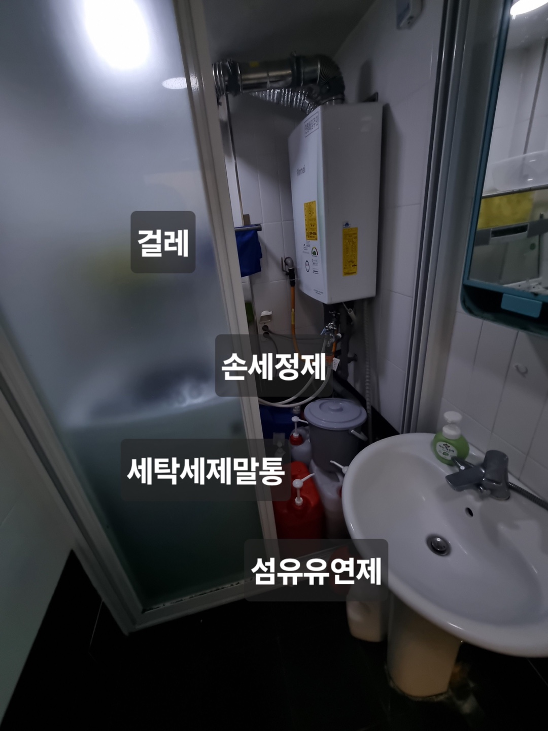 세탁세제,유연제 : 세탁기 오른쪽 아래