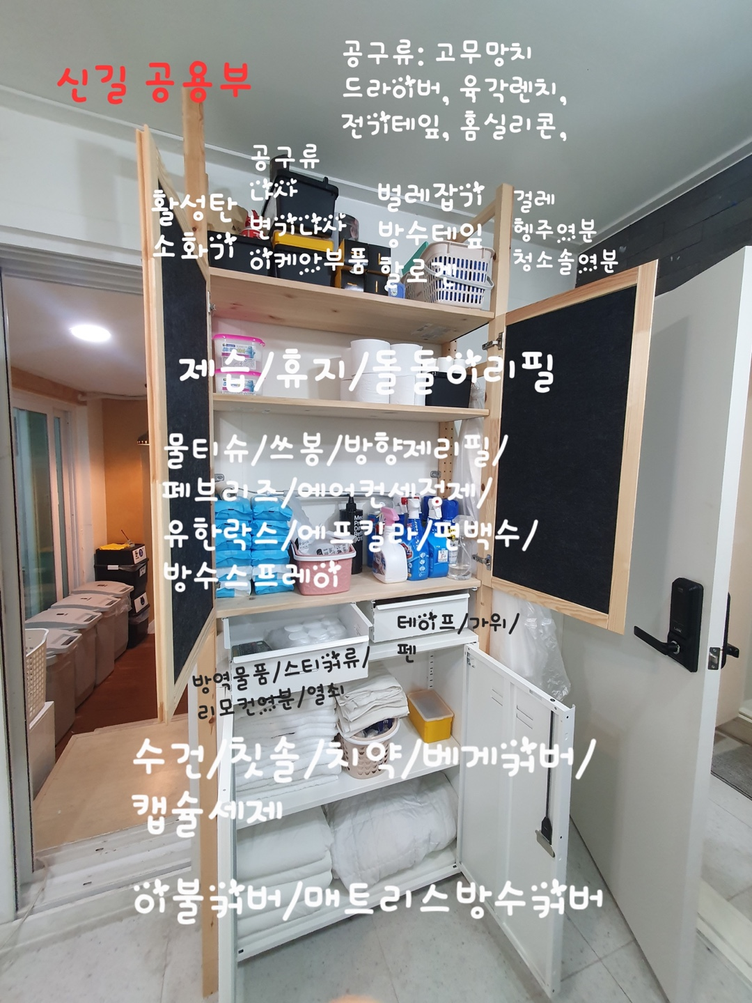 8.돌돌이,페브리즈 : 캐비넷위 나무문