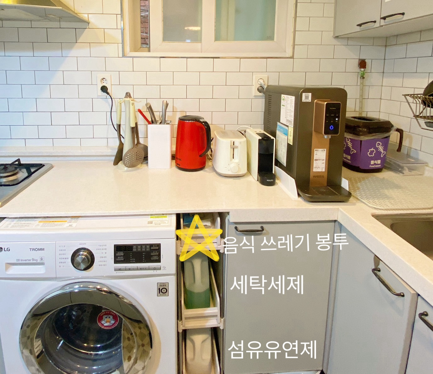 - 종량제 봉투 : 1층 거실 흰색 수납장 왼쪽 아래