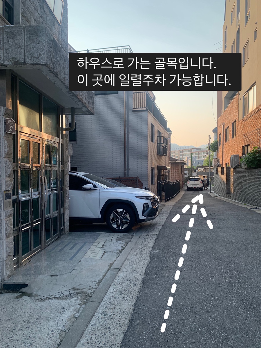 집 앞: 집앞은 막다른 골목이라서 일렬 주차가 가능합니다 (단 주차후 외부에 멀리 다녀와도 되는 위치가 아니라면 문제 없을 만한 위치로 위치 변경후에 외출하셔야 합니다)