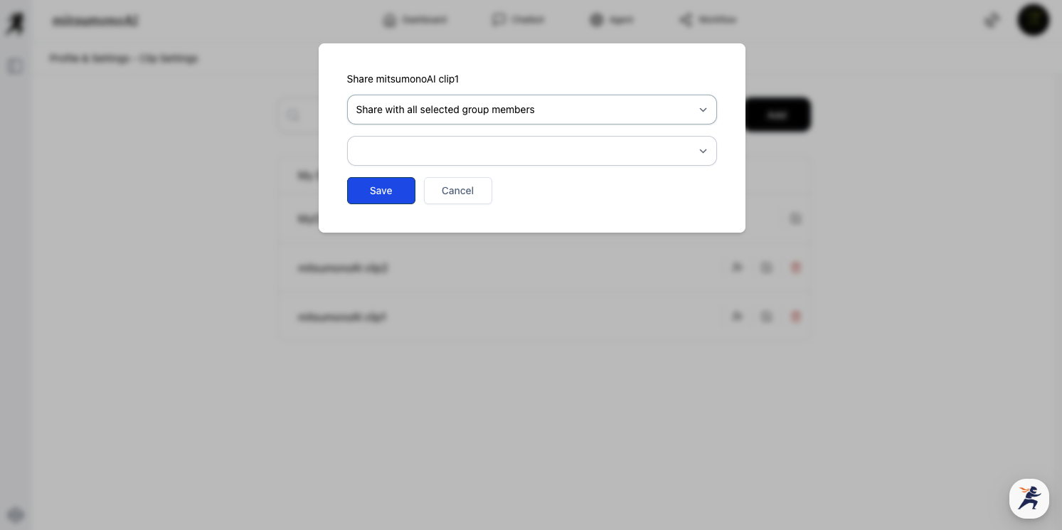 In the mitsumonoAI Team Plan, the main account (Administrator) can create and manage Groups. By registering sub-account users to a Group, the main account can share Missions and Clips with those registered sub-account users.