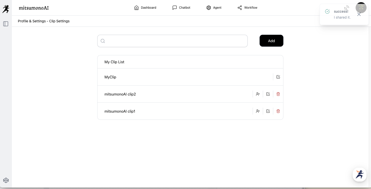 In the mitsumonoAI Team Plan, the main account can add other members as sub-accounts using their email addresses. Users registered as sub-accounts share tokens with the main account and other members. They can also share, edit, add, and delete Missions and Clips within the scope of their assigned permissions.