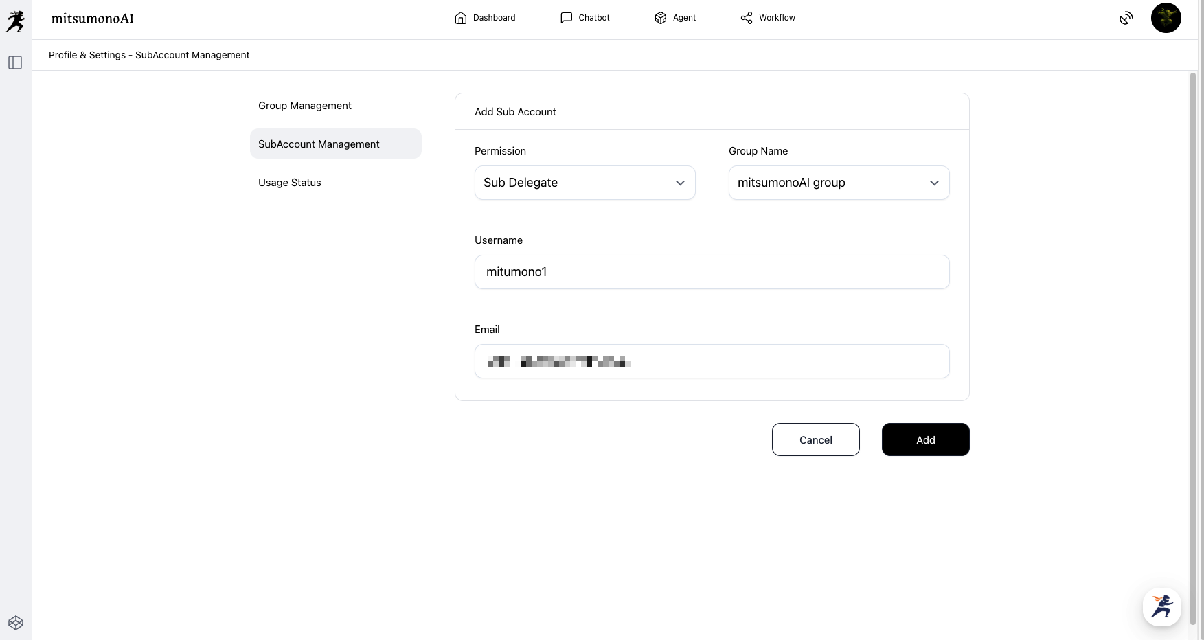 In the mitsumonoAI Team Plan, the main account can add other members as sub-accounts using their email addresses.