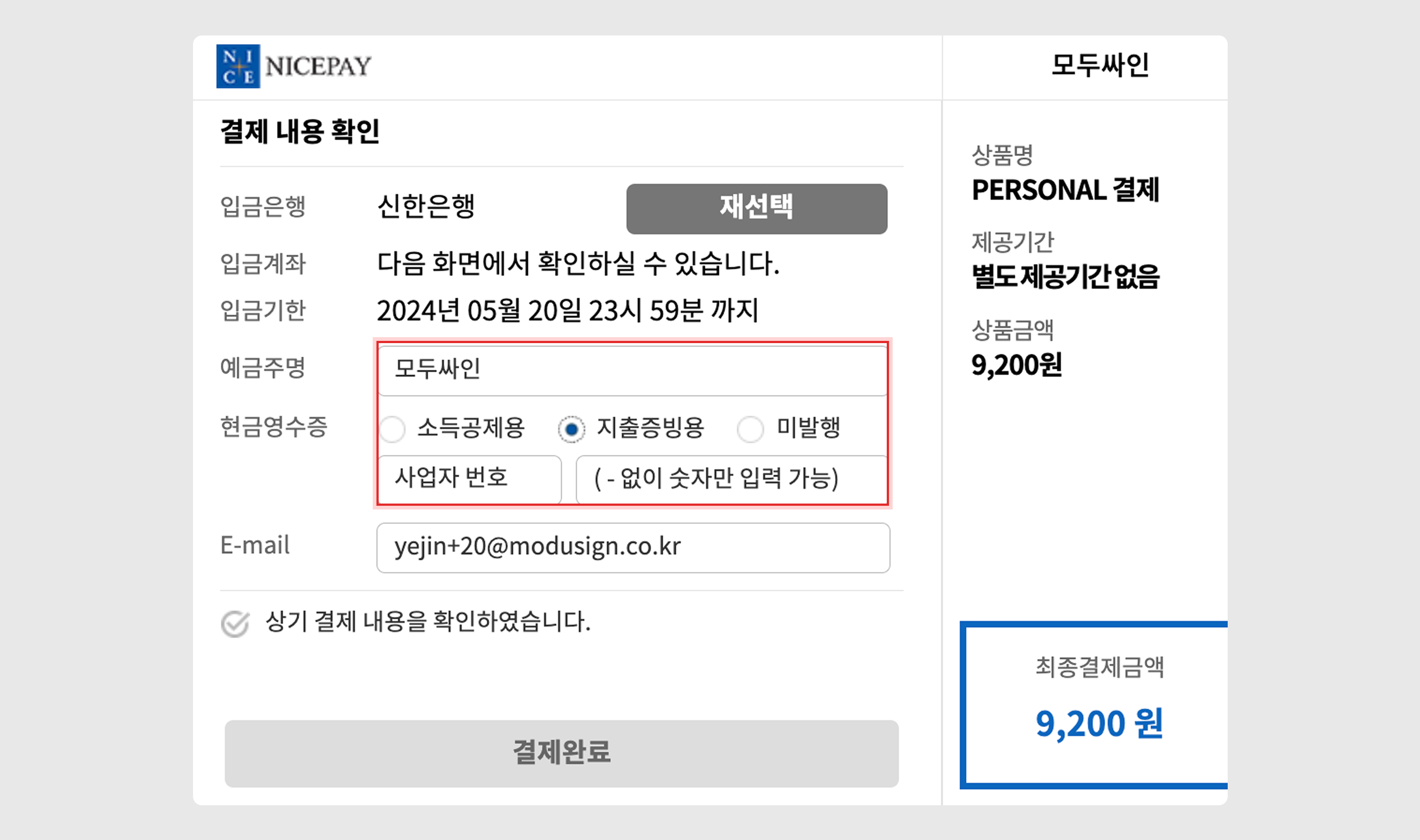 다만, 세금계산서 발급이 꼭 필요하신 경우에는 가상계좌가 아닌 모두싸인 법인 계좌로 입금해 주셔야 하며, 채팅상담으로 문의주시면 절차를 안내드리겠습니다.