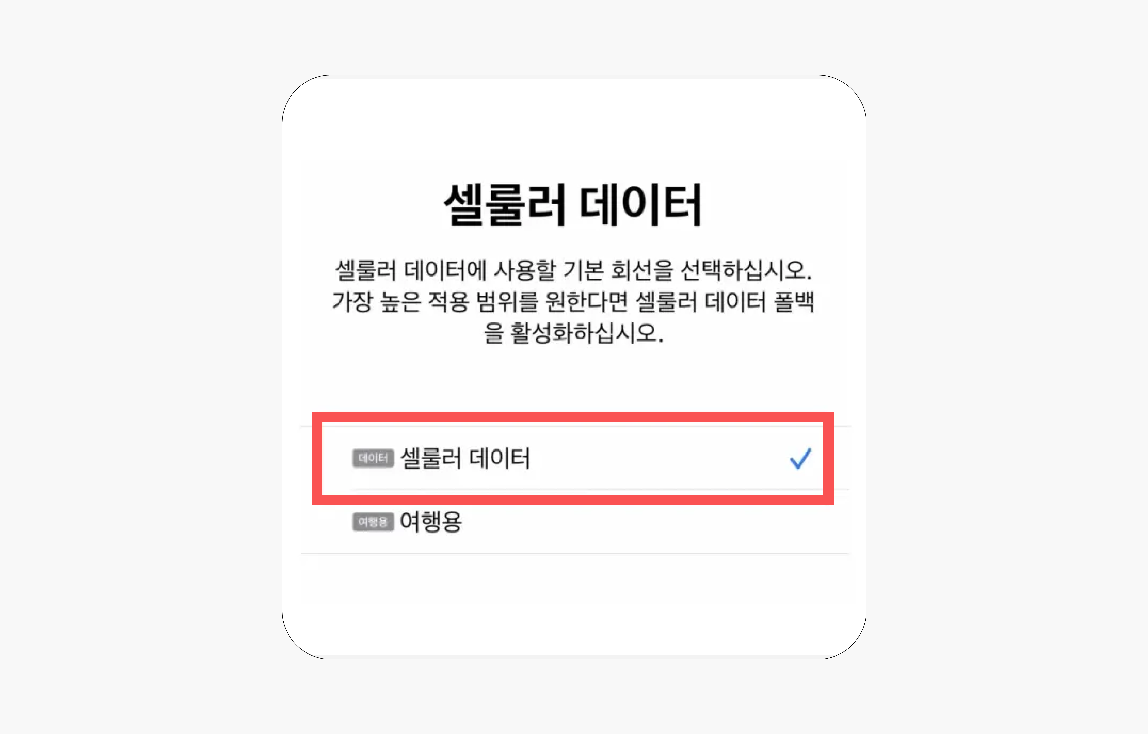 셀룰러 데이터에 사용할 회선을 선택해 주세요.