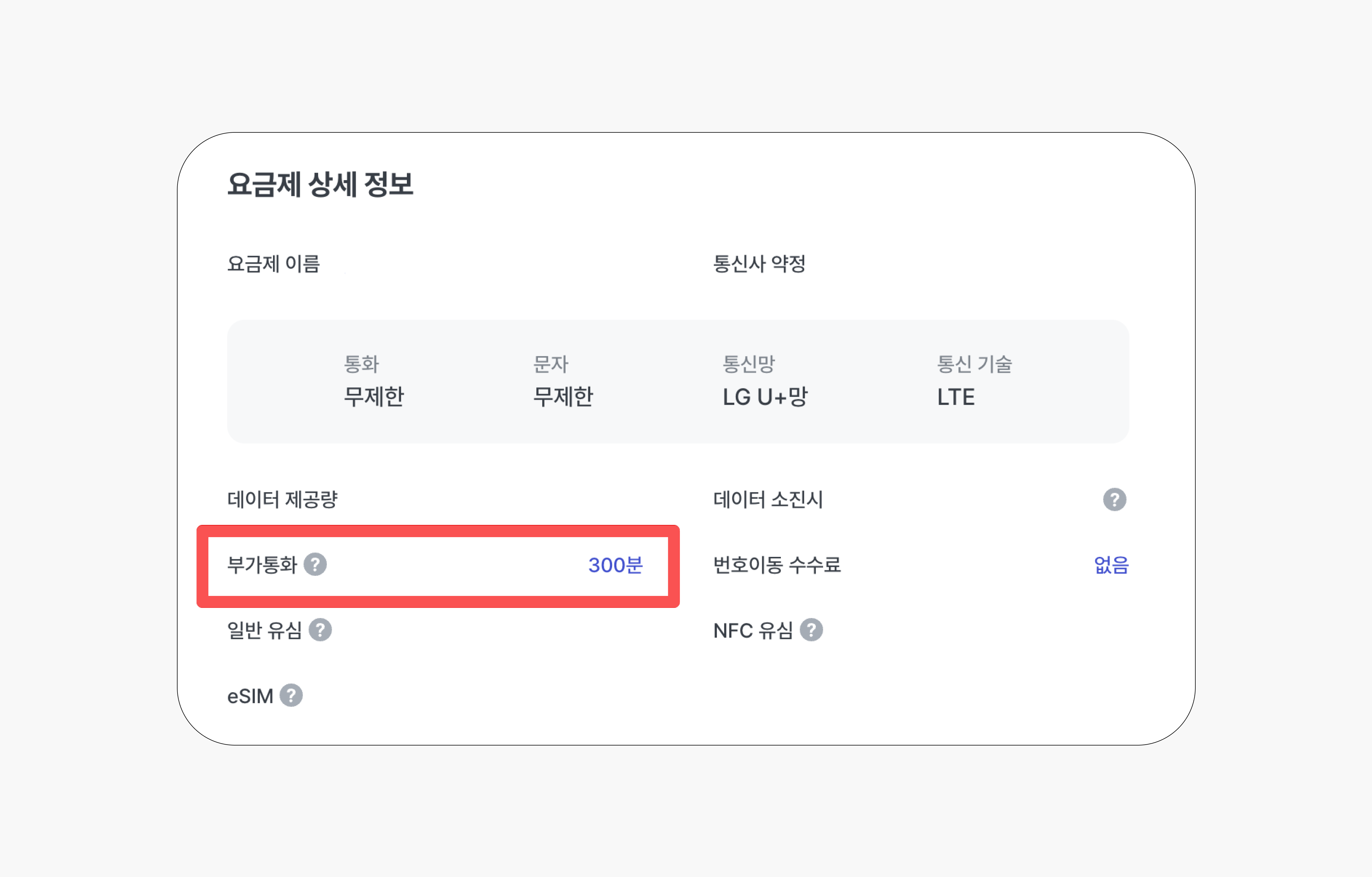 Q. 요금제 내 부가통화 제공량은 어디서 확인할 수 있나요?