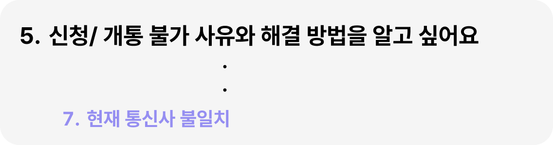 신청/개통 과정에서 입력한 현재 가입 통신사 정보가 불일치할 경우 진행되지 않아요.