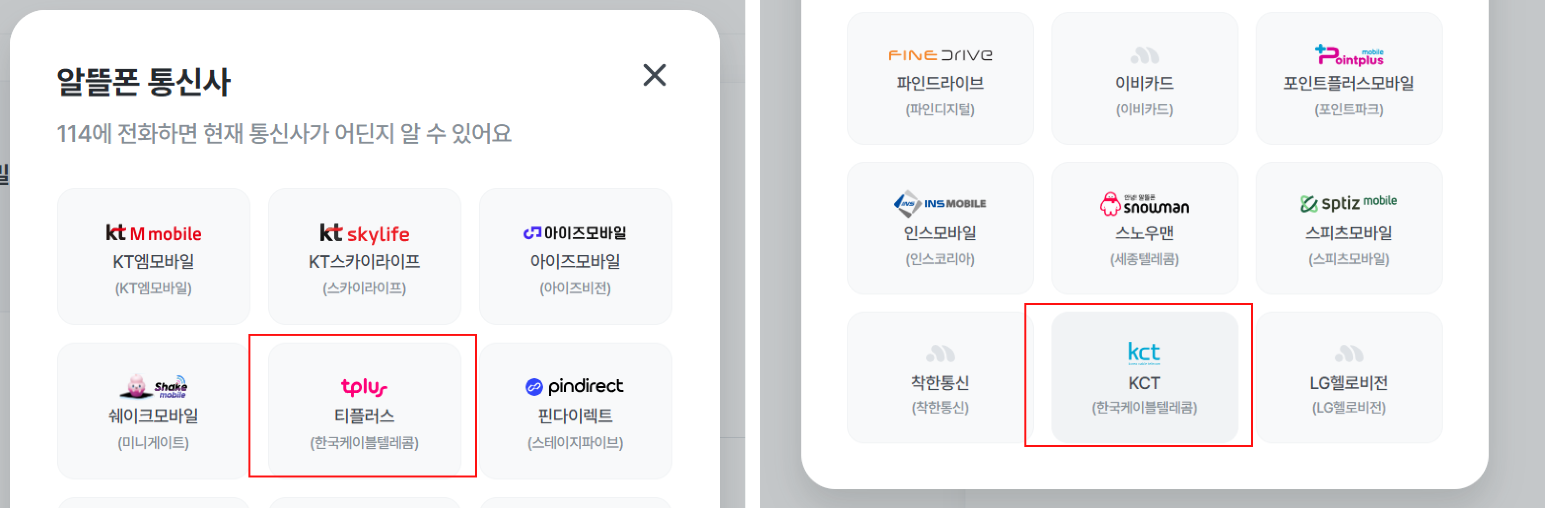 → 그렇다면, '티플러스' 또는 'KCT'를 선택하여 진행해 주세요.
