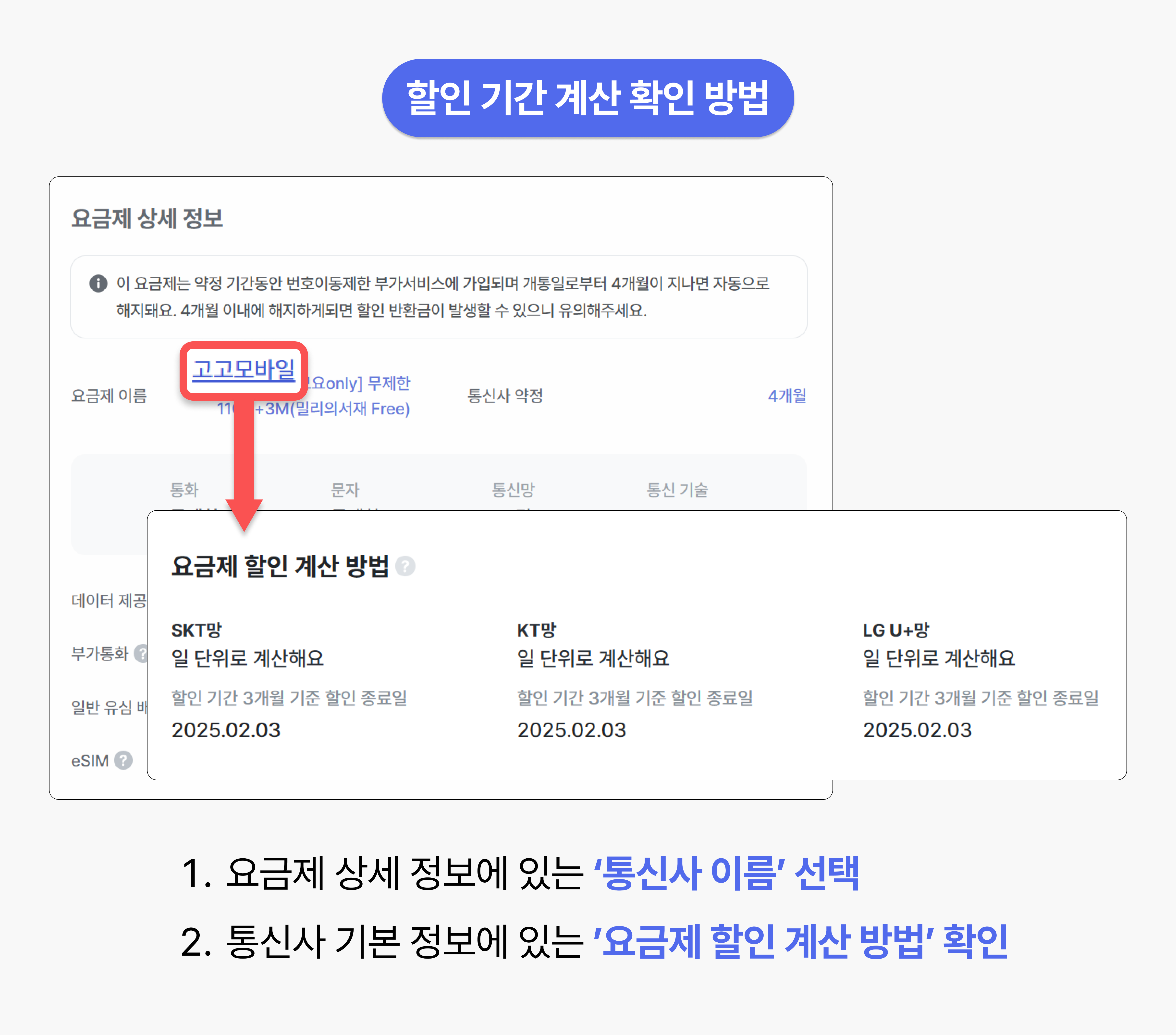 요금제 할인 기간 계산 방식은 아래 경로를 통해 확인할 수 있어요.