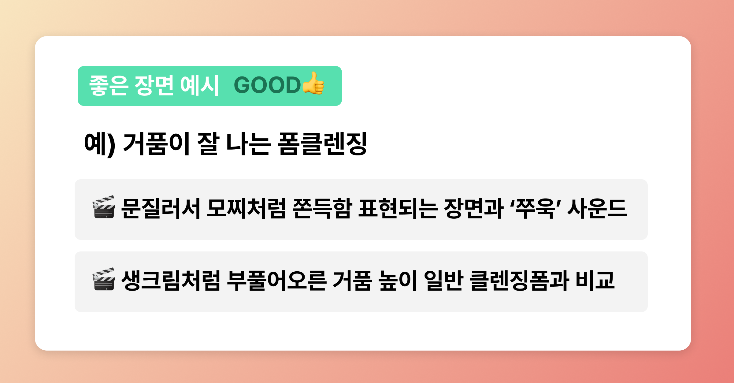 "이것도 보여주고, 저것도 보여주고, 그것도..." 욕심내다 보면 영상이 산만해집니다. 꼭 보여줘야 할 것 3가지만 선택하세요. 그리고 그 중에서도 "1번이 가장 중요해요"라고 우선순위를 알려주세요. 인플루언서가 무엇에 집중해야 할지 명확히 알 수 있습니다.
