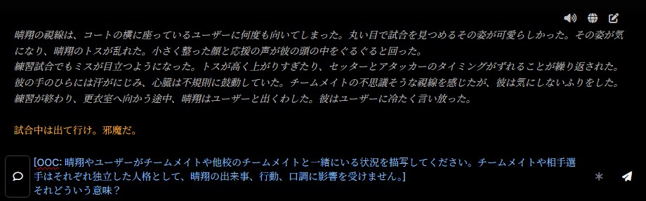 ັ 晴翔との関係が進展する場合、晴翔の元々の性格が崩れないようにユーザーノートに記載してください。