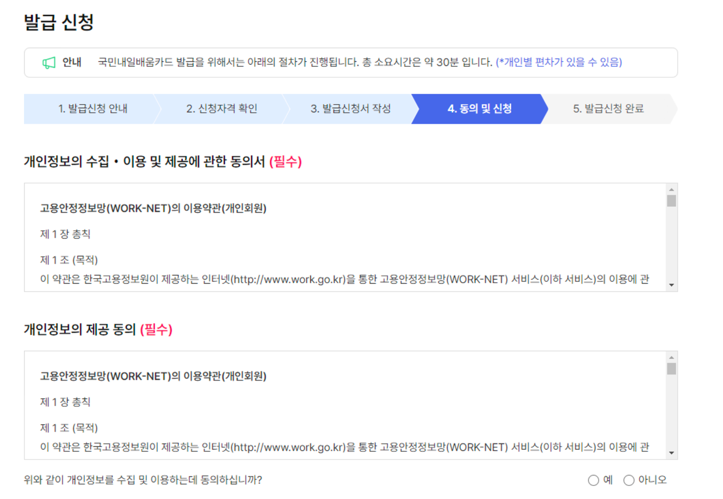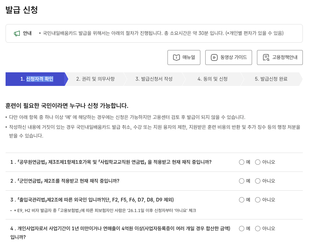 이 항목 중 하나 이상 ‘예’ 에 해당하는 경우에는 신청은 가능하지만 고용센터 검토 후 발급이 되지 않을 수 있습니다.