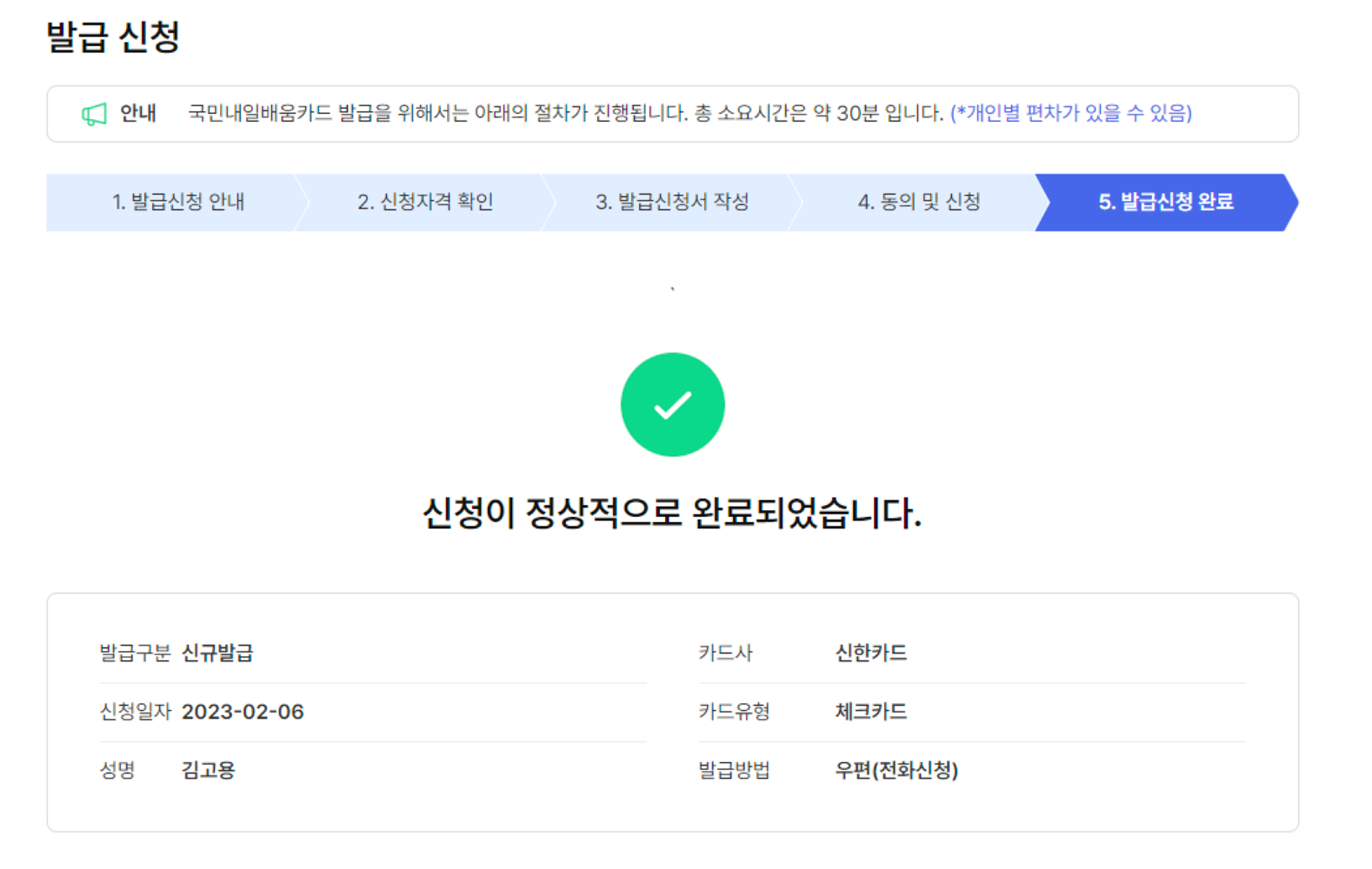 배송지 정보의 경우 카드 수령 방법이 우편일 경우에만 작성하시면 돼요.