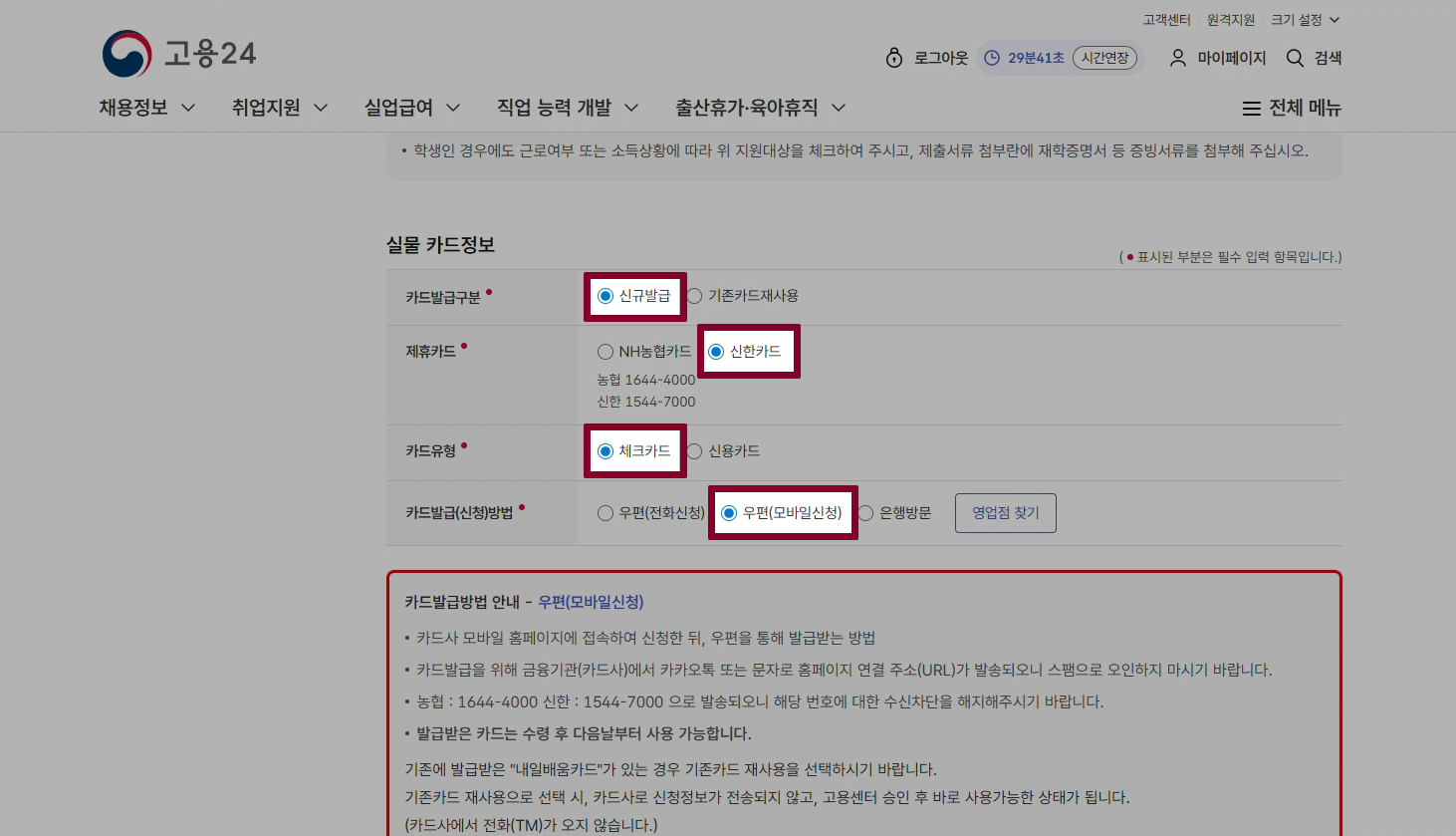 가장 빠르고 효율적인 신청 방법이 우편(모바일신청), 즉 앱카드 신청이에요.