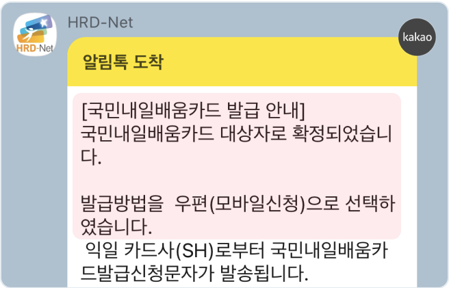 내일배움카드 신청 후 대상자 확정 안내 알림톡을 받을 수 있어요.