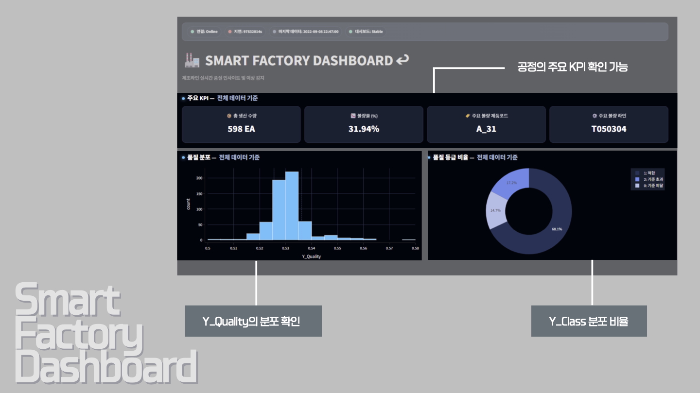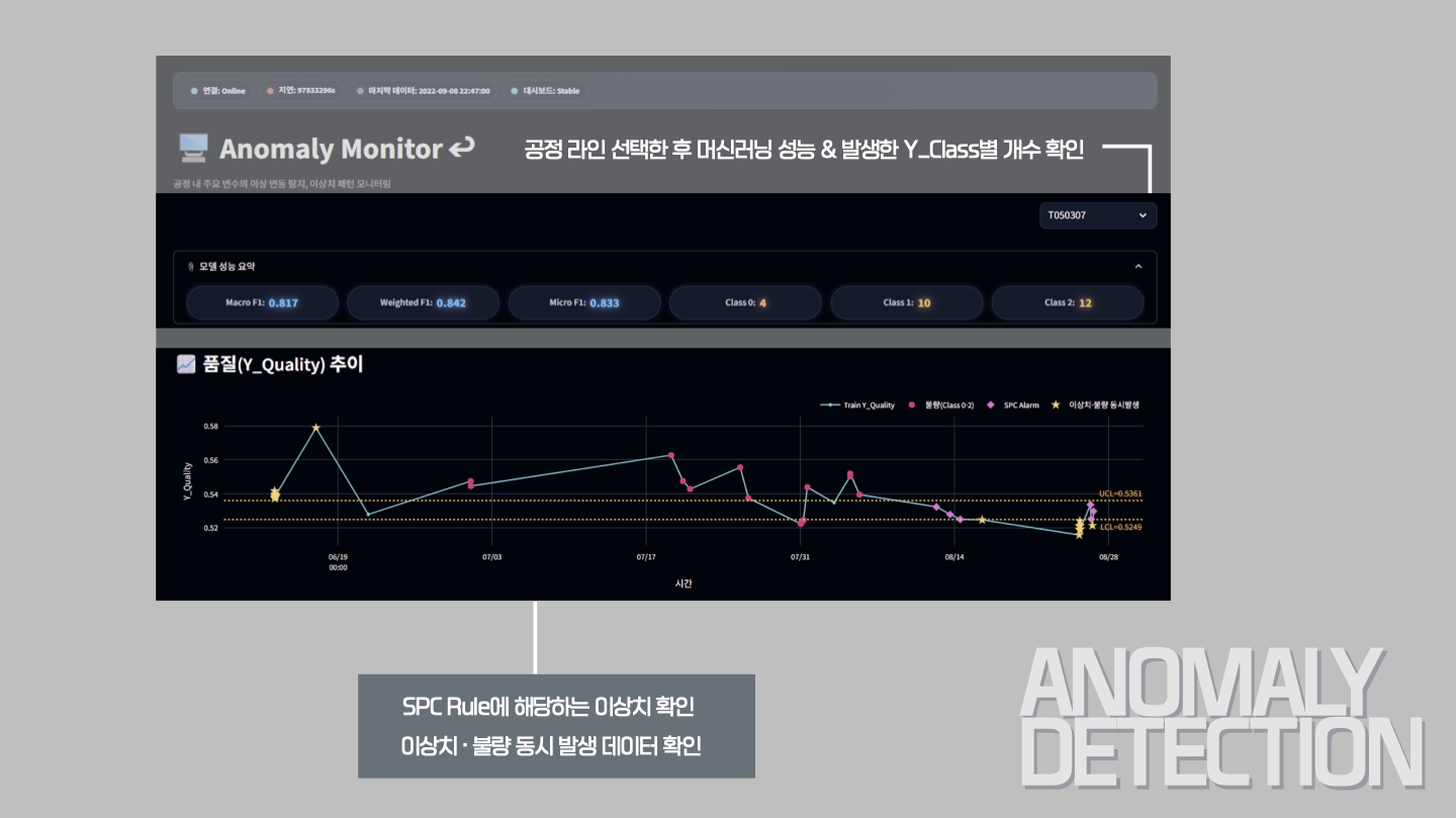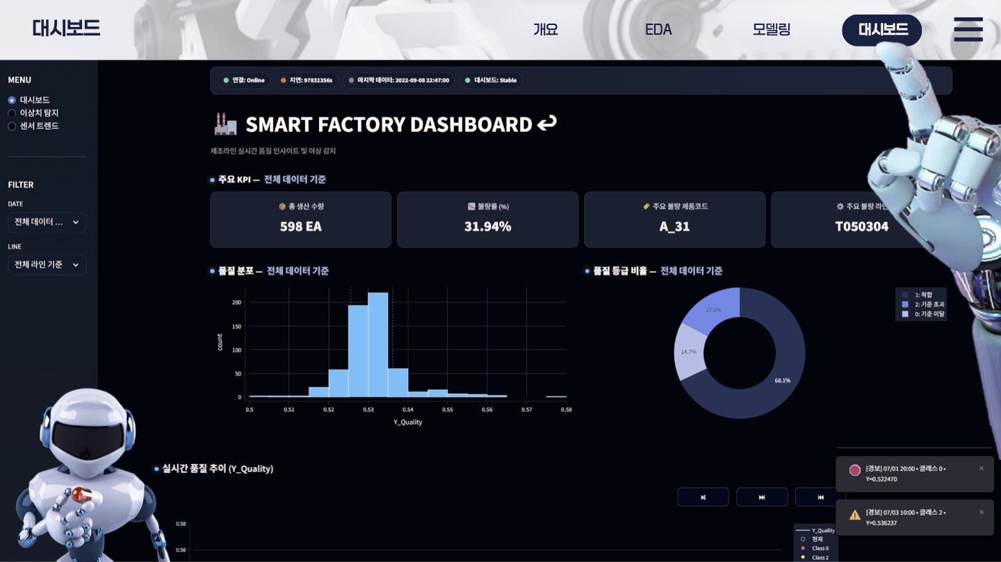 이 프로젝트를 통해 데이터 기반 공정 이상 탐지와 품질 예측의 통합 모니터링 체계를 완성했습니다.