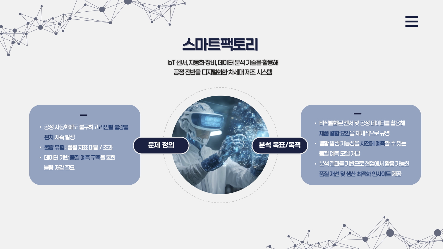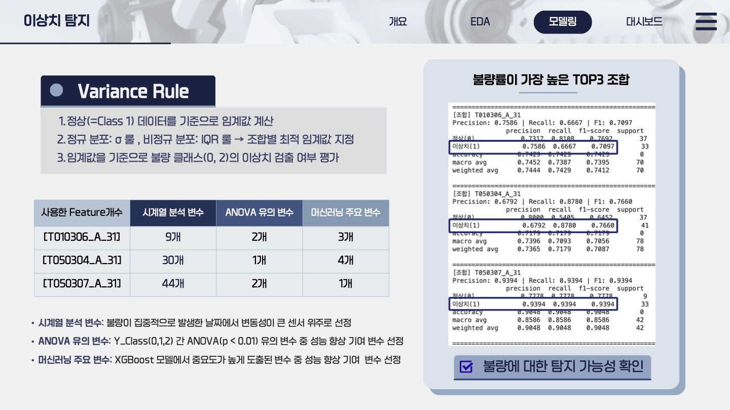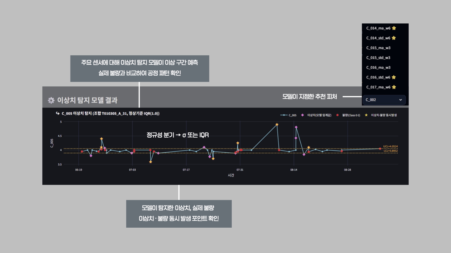 이 프로젝트를 통해 데이터 기반 공정 이상 탐지와 품질 예측의 통합 모니터링 체계를 완성했습니다.
