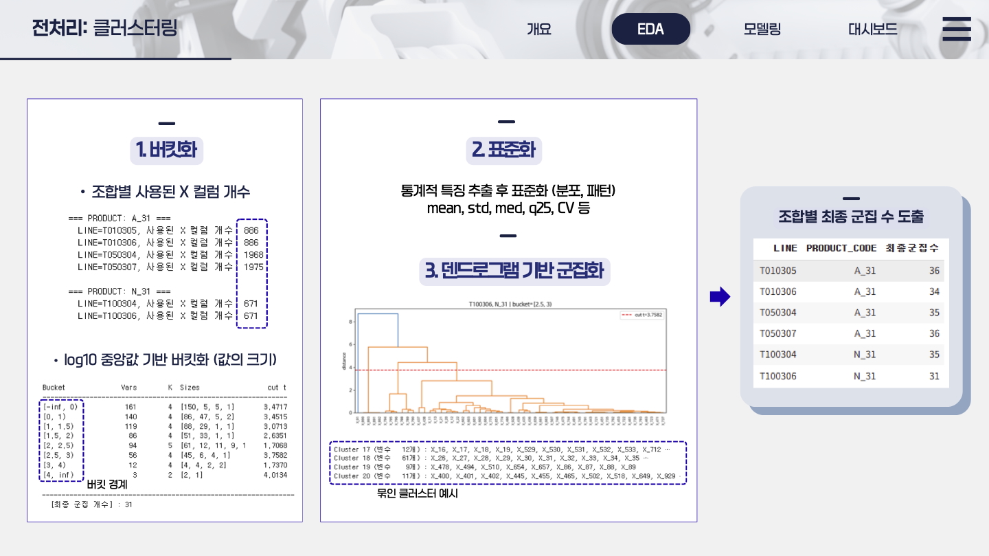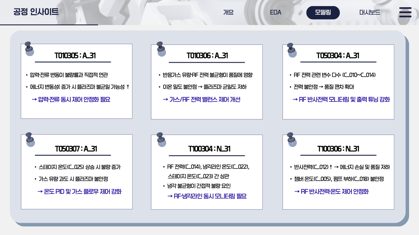 시각 요소를 단순히 나열하지 않고, 인사이트 전달 중심으로 구성하여 실제 공정 개선 의사결정에 활용할 수 있는 형태로 완성했습니다.