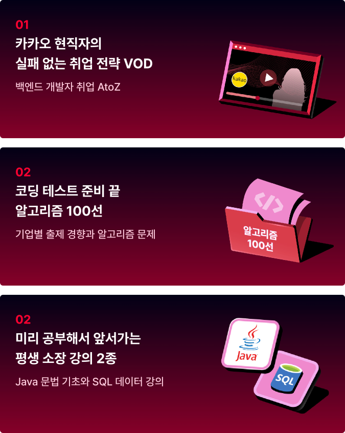 이 두 영역은 학습 초반뿐만 아니라 면접 준비를 할 때, 그리고 실무에 들어간 이후에도 계속해서 다시 확인하게 되는 내용이에요. 필요할 때마다 다시 볼 수 있도록 평생 소장으로 제공하고 있습니다.