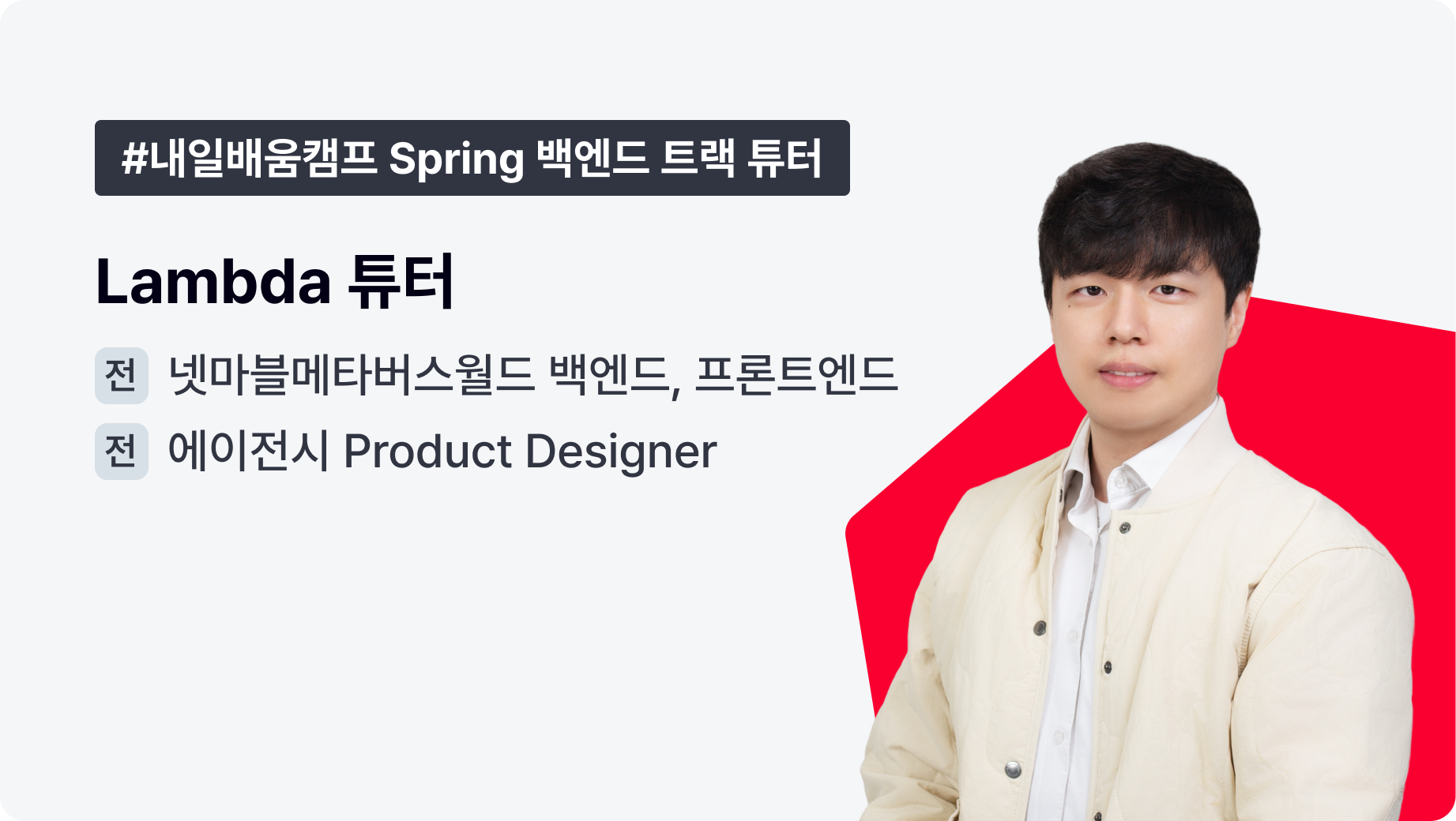 Lambda 튜터님은 여러 환경에서 실제 서비스를 만들어 온 풀스택 개발자입니다. Go, NestJS, Spring 기반의 백엔드 설계부터 프런트엔드 구현까지 경험하며, 기능 구현을 넘어 완성도를 높이는 역량을 가지고 계신 분입니다.