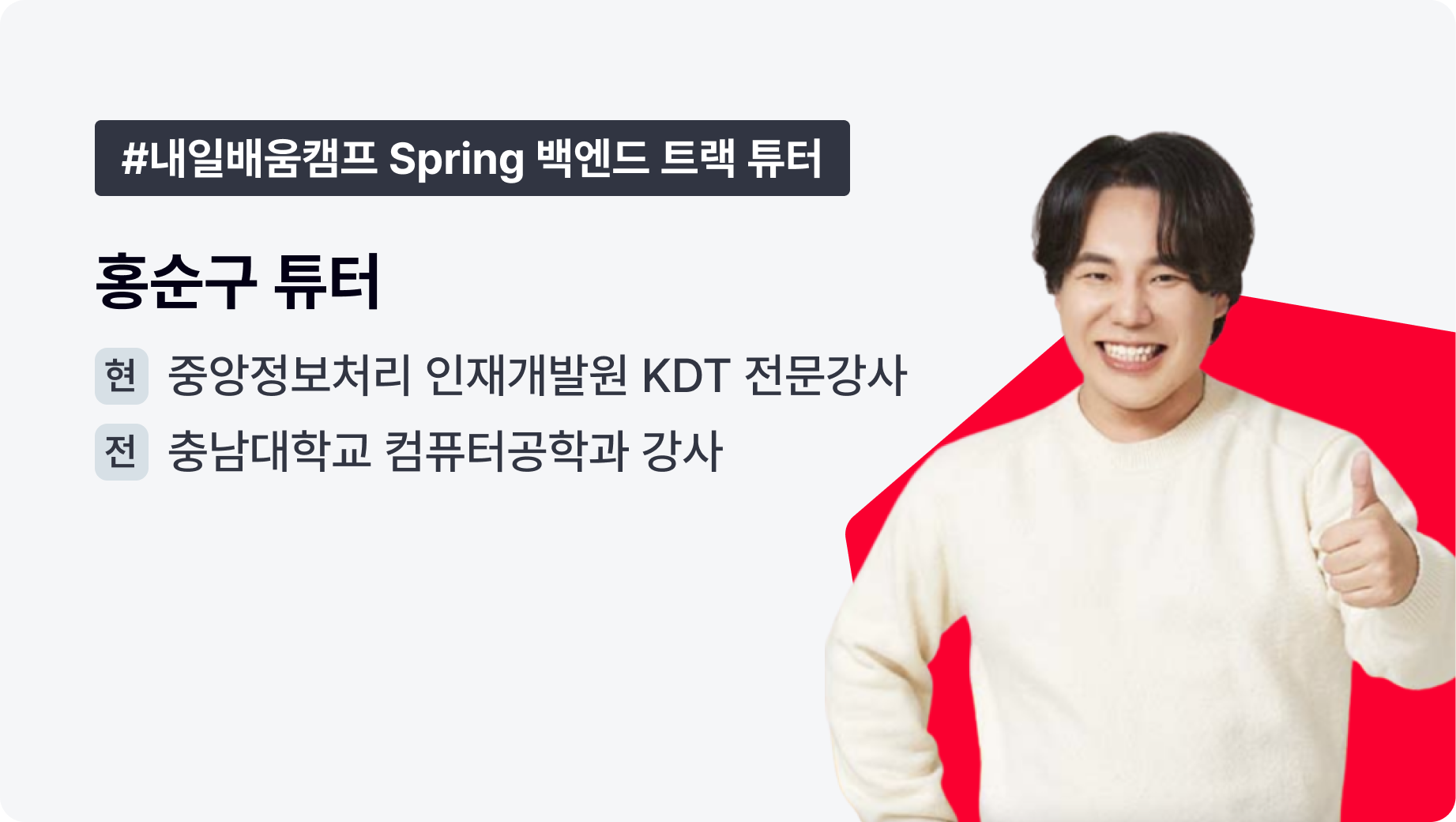 홍순구 튜터님에게 배우는 과정은 실무와 취업을 향한 기준과 방향을 함께 정리해 나가는 경험이 될 거예요.