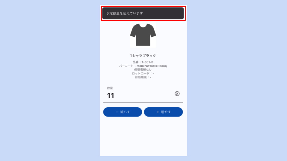 ※ 予定数と同じ数量をバーコードで検品した場合:自動でカメラが閉じて検品完了になります。