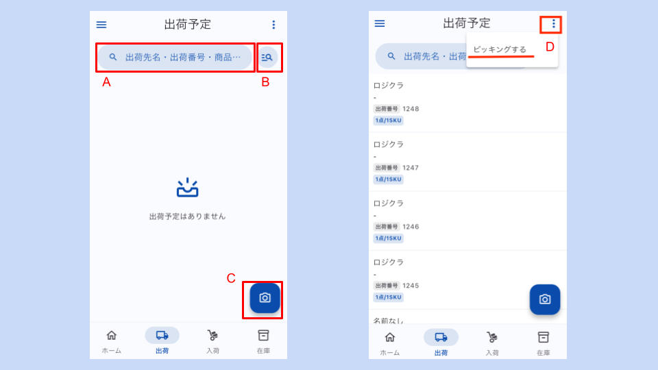 アプリメニュー 出荷 の表示内容や確認方法、検索方法についてご案内します。