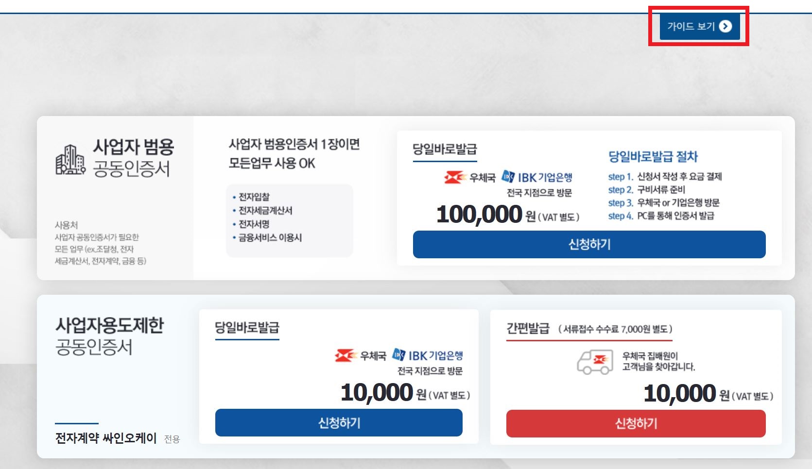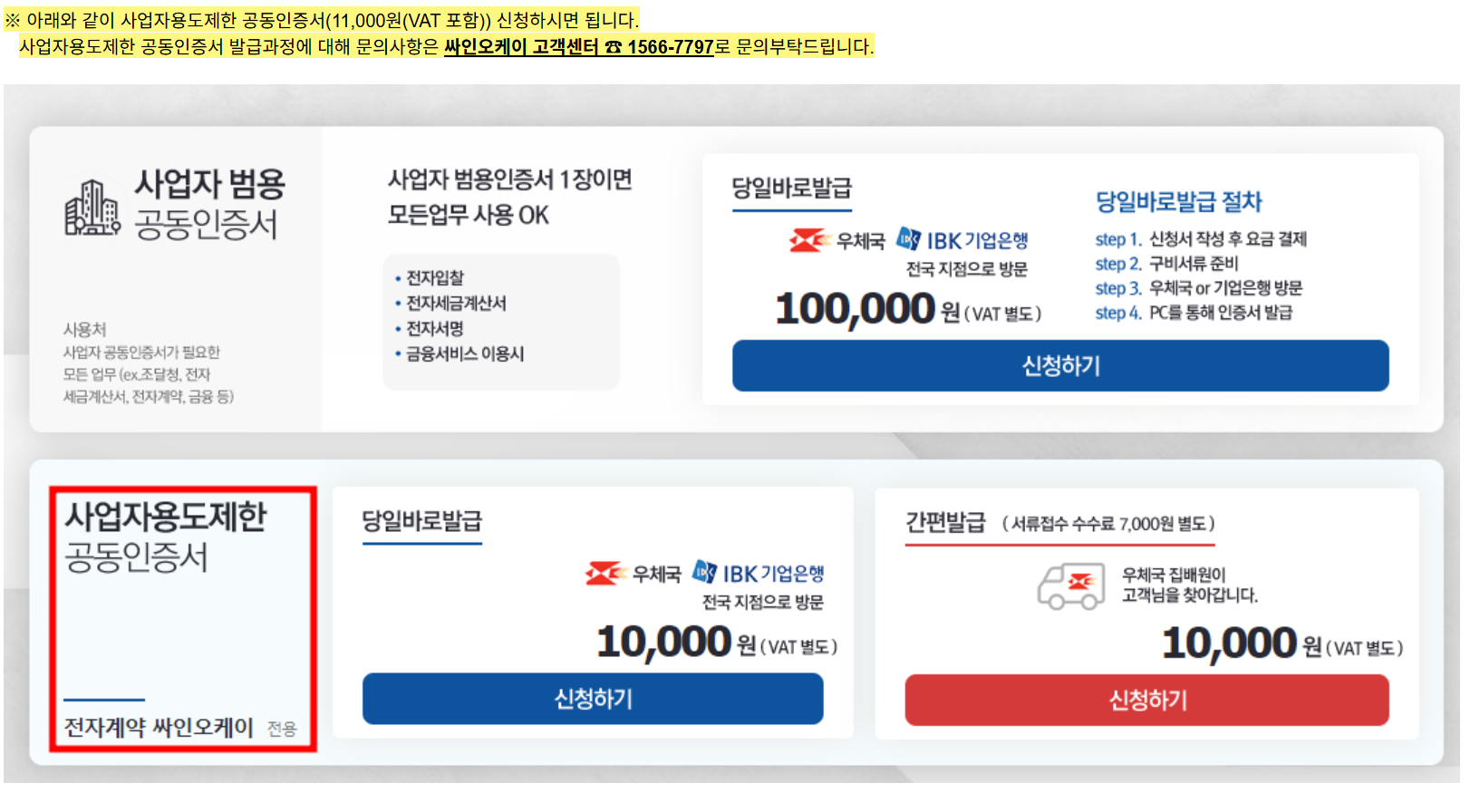 PC로 접속하여 온라인으로 신청 후 해당 기관으로 서류 접수하여 인증서 발급 부탁 드립니다.