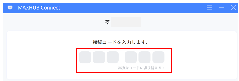 2)MAXHUB Connectを起動し、本機に表示されている接続コードを入力しEnterキーを押すと接続完了です。