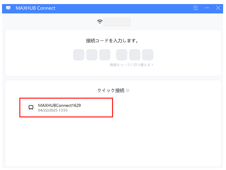 3)PCのMAXHUB Connectを起動すると、PC付近で検索されたMAXHUB製品が表示されます。