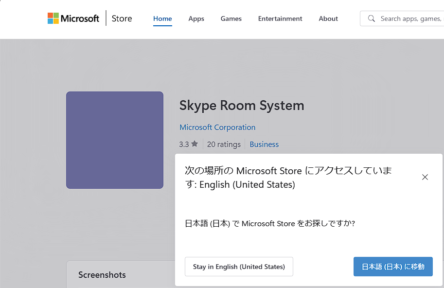 Microsoft Storeのページに移動したら、「日本語(日本)に移動」を選択します。