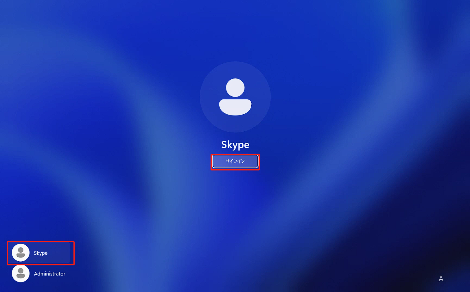 Administratorアカウントからサインアウトし、Skypeアカウントにサインインして完了です。