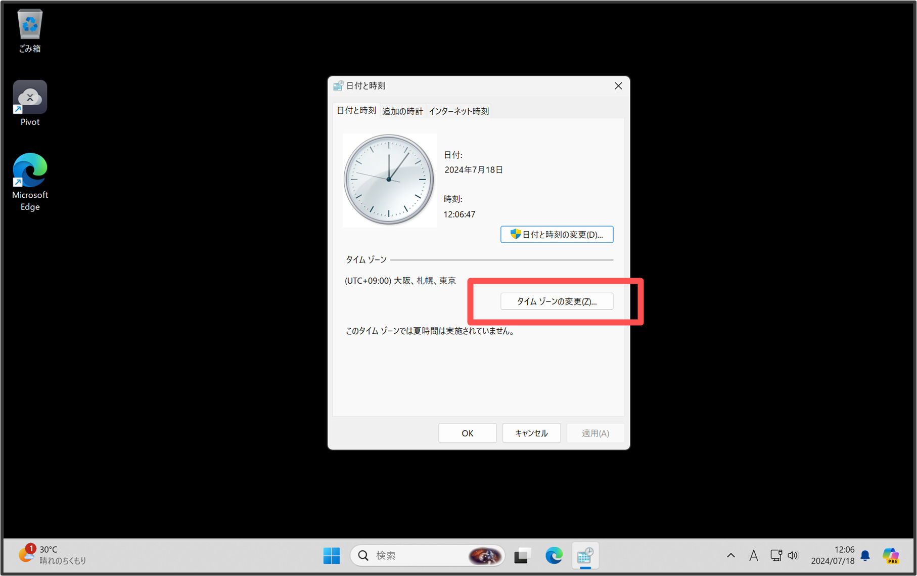 タイムゾーンを変更するには管理用ユーザー(Administrator)にログインする必要があります。