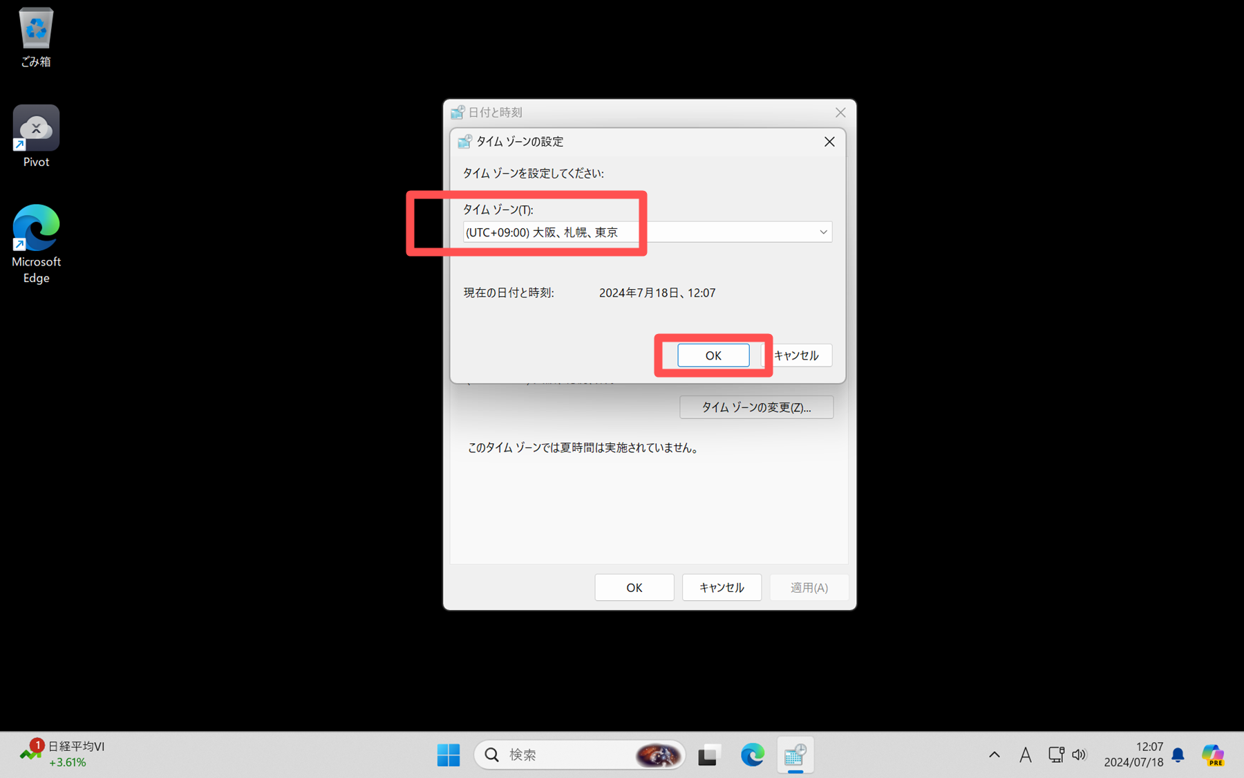 タイムゾーンを「(UTC+09:00) 大阪、札幌、東京」に設定してください。