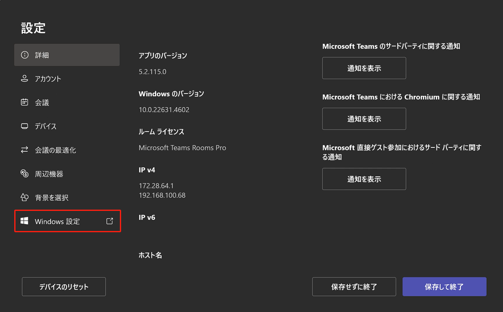 本機を起動したときは自動的に Skype という名前のローカル Windows ユーザー アカウントにサインインします。Microsoft Teams RoomsはSkypeユーザーで実行されます。