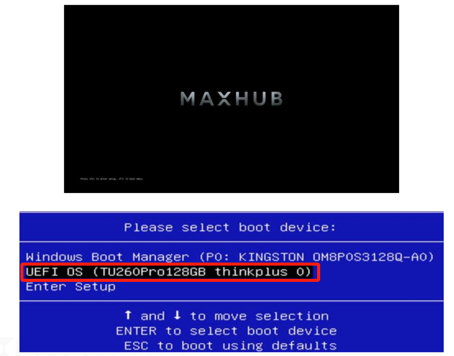 ディスプレイにBoot Menu画面が表示されたらキーボードの↓キーを押して「UEFI」を選択し、Enterキーを押します。