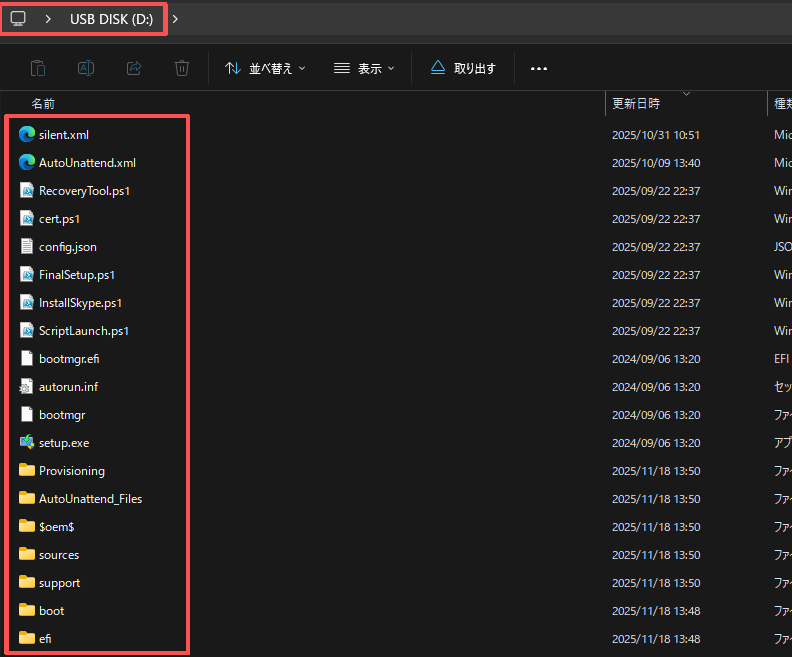 zipファイルを解凍し、全てのファイルをUSBメモリのルートディレクトリ(一番上の階層)にコピーします。